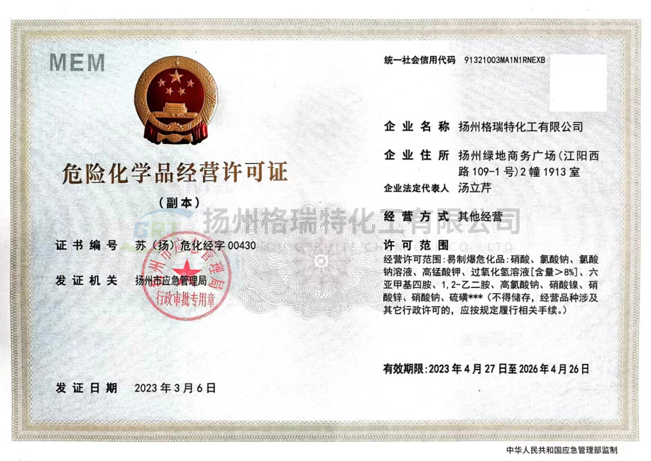 揚州格瑞特化工有限公司生產工廠坐落于江蘇省海安縣胡集工業園區和海安精細化工工業園。總公司成立于1999年,是集科、工、貿為一體的現代化生產型企業。專業致力于水處理劑、紡織印染助劑、化纖油劑等產品的科研、開發、生產和銷售。總公司占地面積40000m,建有現代化標準廠房,擁有先進的生產設備。年產各類水處理劑系列產品12000噸,紡織印染助劑5000噸,產品12個系列40多個品種??偣咀⒅丶夹g投入,設立產品研發中心和環保運營中心,聘請了多位專家為公司技術顧問,并和多個重點院校建立了長期技術合作開發關系,是南通大學、江南大學、南京工業大學產學研基地。